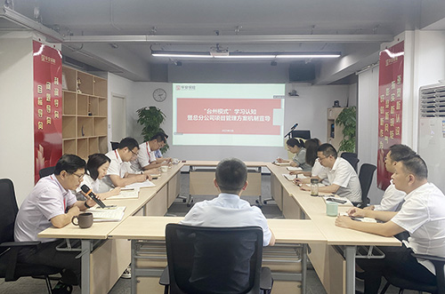 7月20日,江西分公司利用半年度经营分析会组织专项宣导,重点介绍“台州模式”核心理念,并基于江西政府工作报告及相关政策,结合地方发展现状和“台州模式”优势,分析分公司实施“台州模式”的现实意义。会上根据重点区域和重点领域要求,明确了江西高潜力地区、国家战略覆盖区和优势产业、新兴领域具体范围,并据此建立具体目标客户清单。会议提出了分公司“政企对接-产业深耕-产品配置”的实施步骤,同时设立评估与风控机制,对企业性质、项目要求、区域风险等明确量化指标。