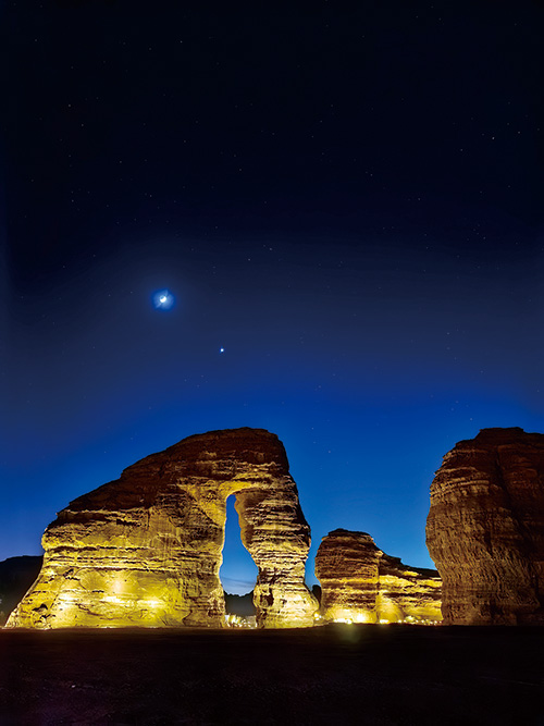 着沙尘的干燥气息和一丝若有若无的绿洲植物清香,提醒着这里生命的顽强。当夕阳沉入地平线,大象岩在暮色中仿佛被点燃,灯光与自然天光交融,人们在光影交错的“剧场”中品味咖啡的醇厚、享受水烟的袅袅、品尝冰淇淋的甜蜜……这是将地质奇观、梦幻光影、沙漠苍茫和人文氛围完美融合的时刻。它超越了简单的视觉欣赏,成为一种触动心灵的、关于时间、自然与永恒的美学体验。