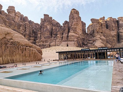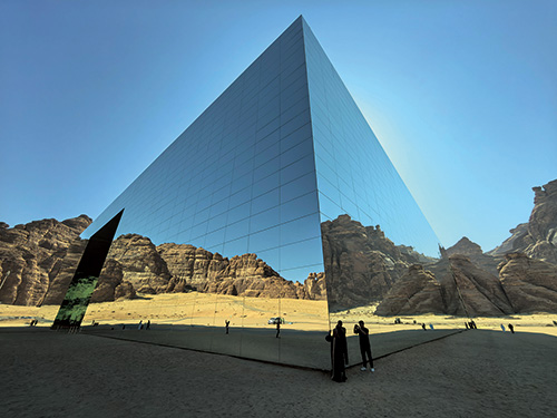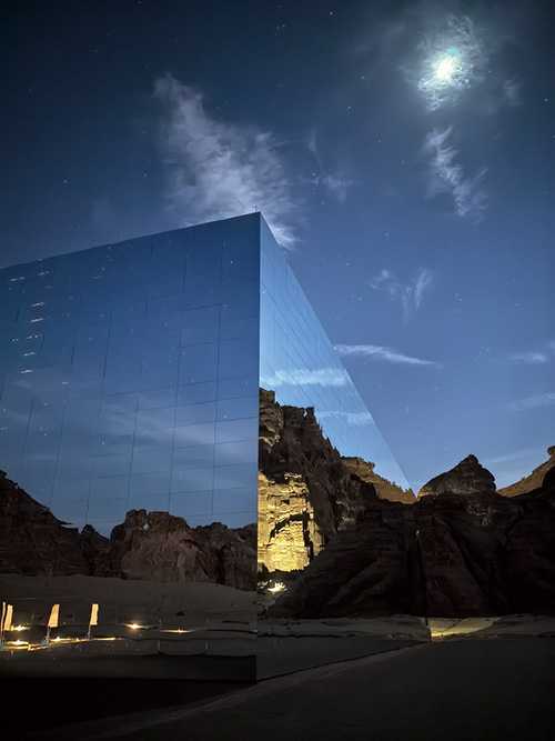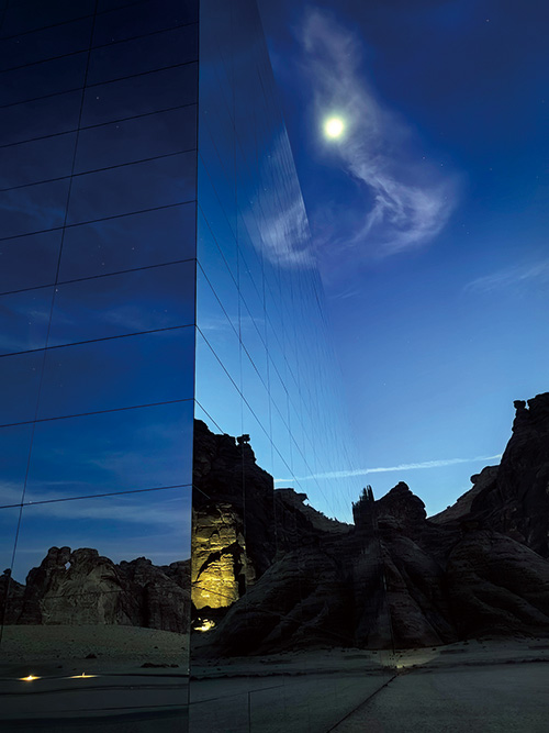 埃尔奥拉,这片曾被世界遗忘的角落,如今正以最古老又最先锋的姿态重生。位于埃尔奥拉沙漠入口处的马拉亚音乐厅,已经被吉尼斯世界纪录认证为“世界最大镜面建筑”,以其独特的镜面设计与周围荒漠怪石交相辉映,映射出埃尔奥拉7000年的人类历史,营造出一种超现实的时空交错感。它如同沙漠中的海市蜃楼,巨大的镜面外墙完美反射着周围的峡谷与天空,光影与音乐在镜面空间内交织,是未来感的极致体验。