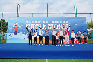 12月7日上午,“拾阶而上,聚力共赢”——华安保险总公司第十届趣味运动会在深圳福田海滨生态体育公园激情开赛。绿茵场上,华安保险总公司及深圳分公司的数百名员工,集结成码力军队、银河战舰队、乘风破浪队、行创精进队、超级英雄队、金盾队、狂飙队、燃动队、圳能量队九支队伍,展开了一场集竞技性与趣味性于一身的精彩赛事。本届趣味运动会得到公司领导的高度重视与鼎力支持。党委书记、执行董事赵权,党委副书记、纪委书记、纪检监察部部长张雷携多位在深总经理室领导、公司工会主席共同出席开幕式,为运动健儿们加油助威。