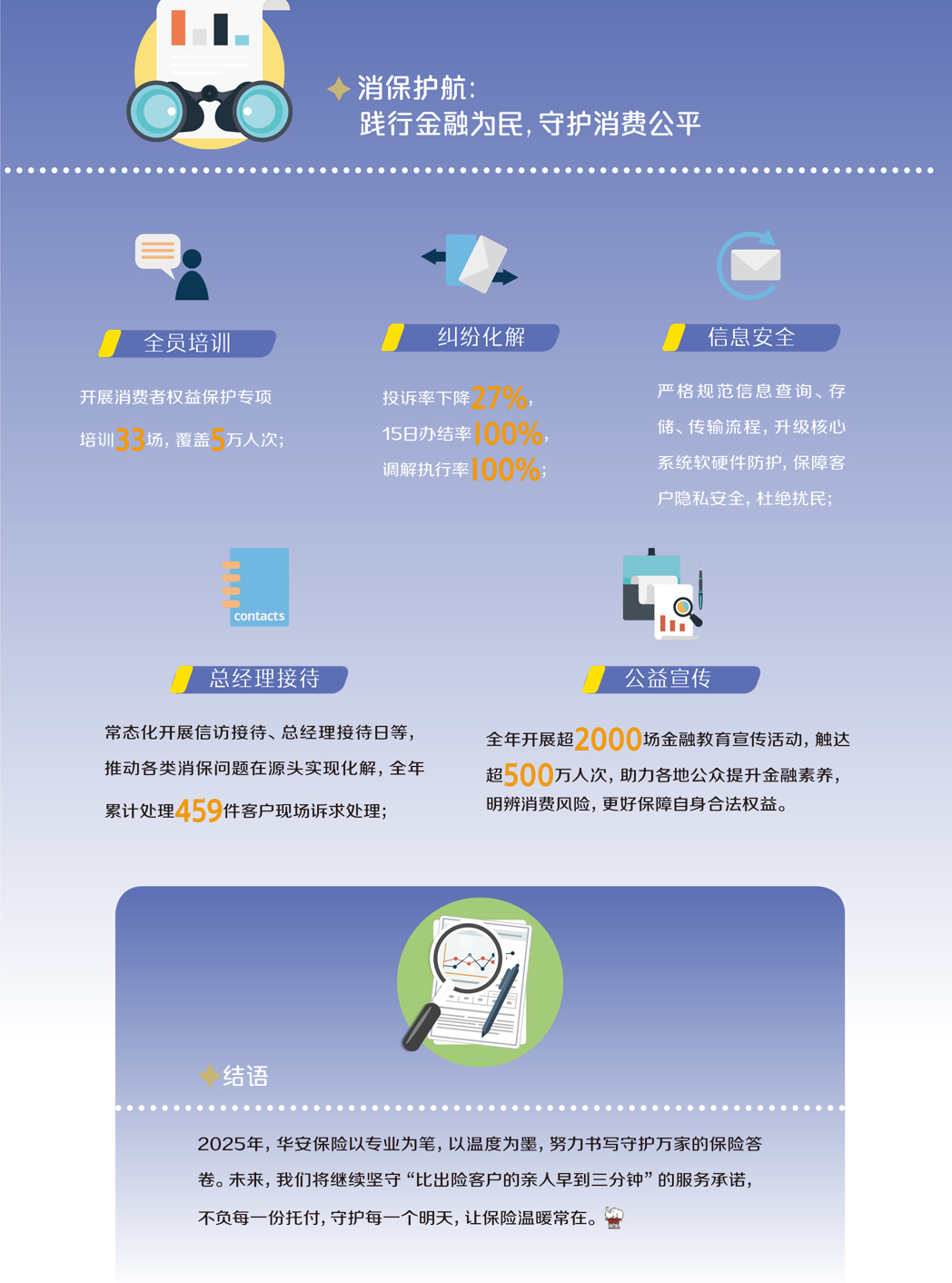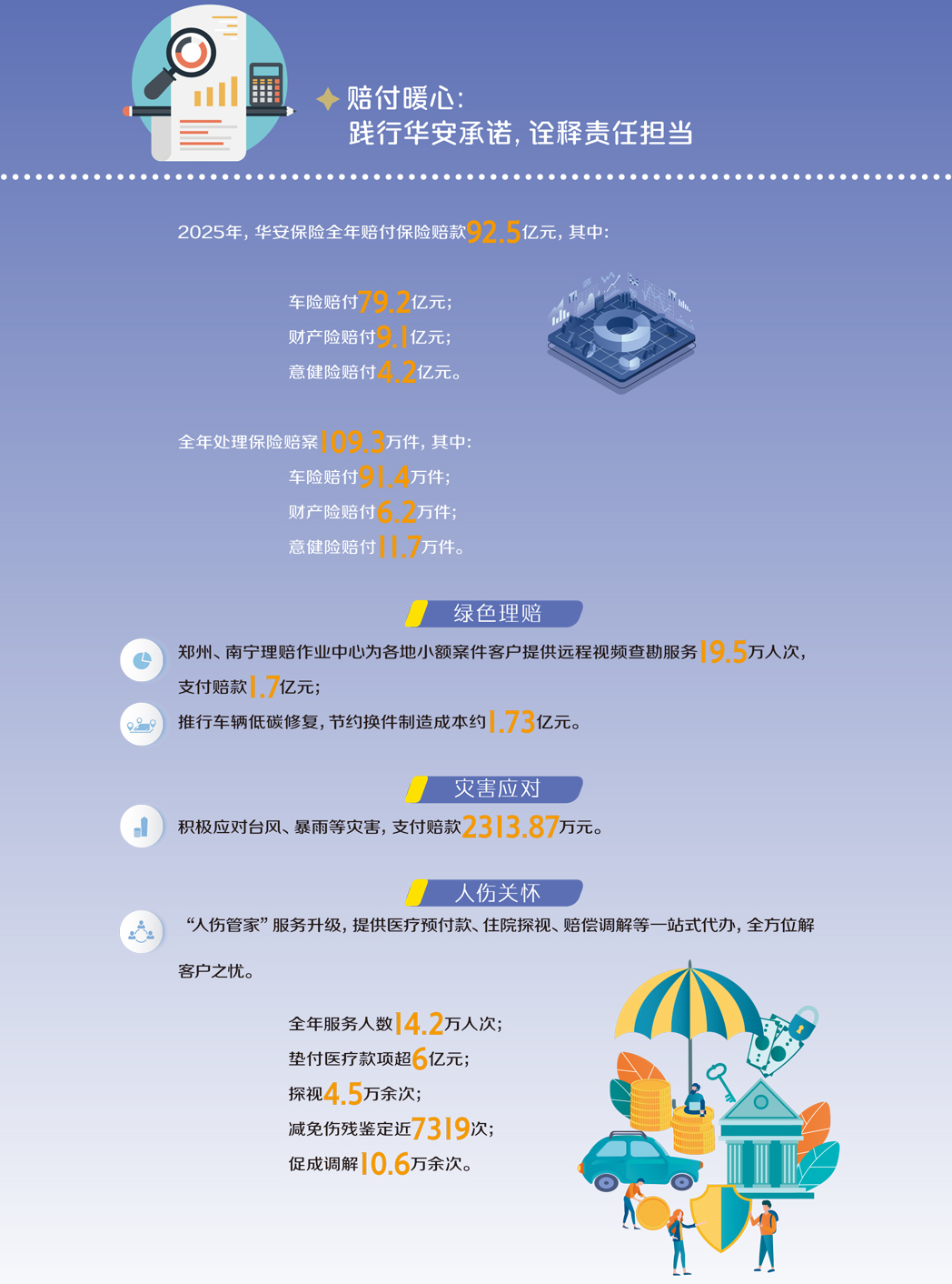 【前言】每一份保单,都是对安稳生活的期盼;每一次托付,都让我们深感保险责任之重。2025年,万名华安人持续致力于以更扎实、更温暖的行动,去回应这份厚重的客户信赖。我们始终坚持“比出险客户的亲人早到三分钟”的服务理念,以保险专业守护万家灯火,也尝试将金融服务的温度向更多家庭与企业传递……