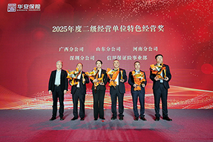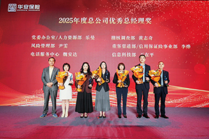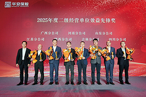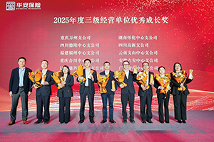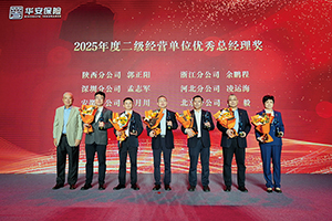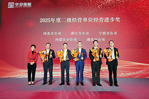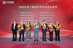 当天下午,“三十而励 骏业腾飞”——华安保险2025年度表彰大会在深圳五洲宾馆举行。大会对获得2025年度总公司先进部门、部门优秀总经理;二级经营单位效益先锋奖,分公司优秀总经理、稳健效益奖、勇毅达成奖、特色经营奖、经营进步奖、“台州模式”先行奖;三级经营单位优秀总经理、杰出贡献奖、稳健经营奖、利润贡献奖、奋勇达成奖、优秀成长奖的集体和个人进行了肯定与表彰,公司领导分别为各奖项颁奖。