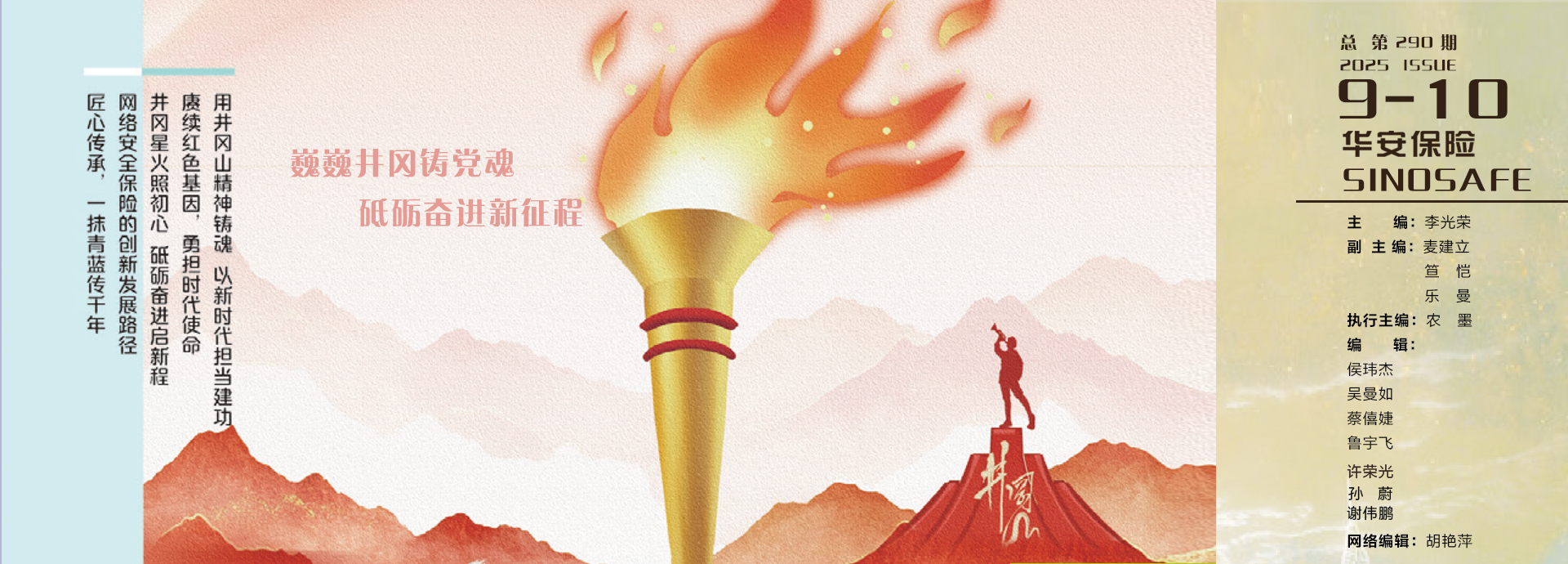 290 卷首语PREFACE 井冈精神耀新程 井冈风起,翠竹轻摇,追寻初心的华安人,在这个夏天再次踏上这片点燃星火、照彻神州的红色土地。华安保险党委组织的“巍巍井冈铸党魂 砥砺奋进新征程”党性专题教育培训,不仅是一次跨越时空的红色寻根,更带来一场深入学习贯彻党的二十大精神、巩固落实中央八项规定精神的思想淬炼。 览新知INFORMATION 览新知 长护险 一直以来,长护险被视为社保体系中的“第六险”,它通过互助共济的方式筹集资金,为长期失能人员的基本生活照料及相关医疗护理提供服务支持。 历经九年试点探索,长期护理保险制度建设迎来关键进展。9月25日,国家医疗保障局正式印发《国家长期护理保险服务项目目录(试行)》,首次在全国层面统一明确了长护险的支付范围与服务内容,标志着该制度的顶层设计取得重要突破,长护险建设正式从“地方试验”迈入“全国建制”阶段。 探方略COLUMN 巍巍井冈铸党魂 砥砺奋进新征程 编者按: 巍巍井冈山,星火耀征程。为深入学习贯彻党的二十大精神,持续巩固落实中央八项规定精神,8月21—23日,在党委书记、执行董事赵权,党委副书记、纪委书记、纪检监察部部长张雷的带领下,华安保险党委组织公司部分党委纪委班子、党建工作机构主要成员及部分基层党组织书记、优秀共产党员、党务工作者及团委成员奔赴井冈山革命圣地,开展“巍巍井冈铸党魂 砥砺奋进新征程”党性专题教育培训。 用井冈山精神铸魂 以新时代担当建功 ——井冈山党性专题教育培训有感 盛夏时节,在公司党委领导的带领下,我们走进中华人民共和国的奠基石,中国革命的摇篮——井冈山。这也是我第二次来到井冈山,十几年前的第一次初见,印象最深的是黄洋界上遭遇的那场突如其来的暴雨,把我和许多同事都淋得“淋漓尽致”,而今年的学习,则感觉确实是在经历一场场思想洗礼:在学习中深刻体会何谓“井冈山精神”,并试图理解与思索学习“井冈山精神”于今天的我们而言依旧具有其熠熠生辉的巨大现实意义。 井冈星火照前路 清风正气筑企魂 当双脚踏上井冈山这片神圣的土地,才真正体会到“中国革命摇篮”背后沉甸甸的历史份量。群山肃立,松柏常青,蜿蜒曲折的挑粮小道,巍峨险峻的黄洋界哨口,无一不在诉说着那段烽火连天的峥嵘岁月。在这里,每一处革命遗址都是一部生动的教科书,每一段革命故事都是一剂精神的营养剂。 让井冈星火,在华安事业中燎原 八月的井冈山,苍翠如海,云雾缭绕。华安保险党性专题教育培训班一行于8月21—23日踏上这片红色的热土,开展了为期三天的“巍巍井冈铸党魂 砥砺奋进新征程”主题教育培训。作为党委宣传部的工作人员,我肩负着记录与传播这次活动的职责,通过镜头捕捉精彩瞬间,用文字描绘行程见闻。 井冈山的回响 红军医院映初心 ——从井冈山小井红军医院感悟初心使命与责任担当 岁月的长河里,总有一些地方,因承载着厚重的历史与不朽的精神,而被赋予永恒的意义。井冈山,便是这样一座山。云雾缭绕间,它像一座永不褪色的精神丰碑,静静矗立在时光深处。 赓续红色基因,勇担时代使命 ——井冈山精神学习心得 8月6日,当我收到公司党委办公室发来的井冈山之行邀请,便欣然应允。彼时,我只将其视作一次寻常的红色之旅,未曾料到,这次为期三天的学习竟会带给我强烈的震撼与长久的感悟。 坚定信念、敢闯新路、勇于胜利 ——井冈山党性教育培训感悟 在公司党委的组织下,我有幸参与了“巍巍井冈铸党魂 砥砺奋进”党性专题教育培训。井冈山,这片浸润着革命先辈热血与理想的红色热土,以其独特而强大的精神力量,让我在深入学习与感悟中,对党性修养、理想信念以及肩负的使命责任有了全方位且更为深邃的认知。 传承井冈山精神,做难而正确的事 巍巍井冈,是中国革命的摇篮。井冈山精神是中国革命精神的源头,其内涵丰富而深刻,“坚定信念、艰苦奋斗,实事求是、敢闯新路,依靠群众、勇于胜利”,这些精神特质穿越时空,历久弥新。 绝境与辉煌 ——井冈山之行有感 处暑时节,我有幸第一次踏上井冈山红色圣地,参加母公司华安保险组织的“巍巍井冈铸党魂,砥砺奋进新征程”党性专题教育培训。初识井冈山,是教科书上“星星之火,可以燎原”的红色印记;此次身临其境,是对“星星之火,何以燎原”的深刻认识和体会。 巍巍井冈铸党魂 砥砺奋进新征程 ——井冈山党性专题教育培训感悟 为深入贯彻党的二十大精神,巩固拓展落实中央八项规定精神学习教育成果,进一步加强党员干部作风建设,8月21日至23日,在公司党委的带领下,我们怀着崇敬与学习之心,踏上井冈山这片红色热土,开展了以“巍巍井冈铸党魂 砥砺奋进新征程”为主题的党性专题教育培训。 井冈星火照初心 砥砺奋进启新程 ——井冈山党性教育培训学习心得 作为一名江西人,我曾多次踏上井冈山这片红色热土,而此次参与公司党委组织的“巍巍井冈铸党魂 砥砺奋进新征程”党性专题教育培训,让我感受到了前所未有的精神震撼和思想洗礼。 井冈山精神的寻根之旅 成为正式党员已有十年时间,但有些惭愧,这些年还未系统性地参观学习过各地党的革命圣地,不管是首个农村革命根据地以及开辟“农村包围城市”道路的井冈山,还是确立毛泽东领导地位的遵义会址以及领导抗日战争和解放